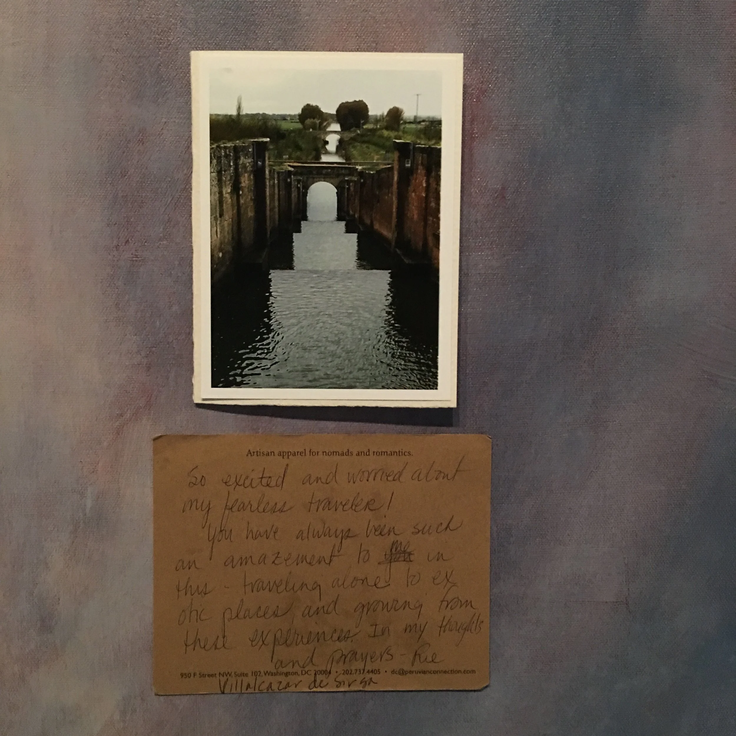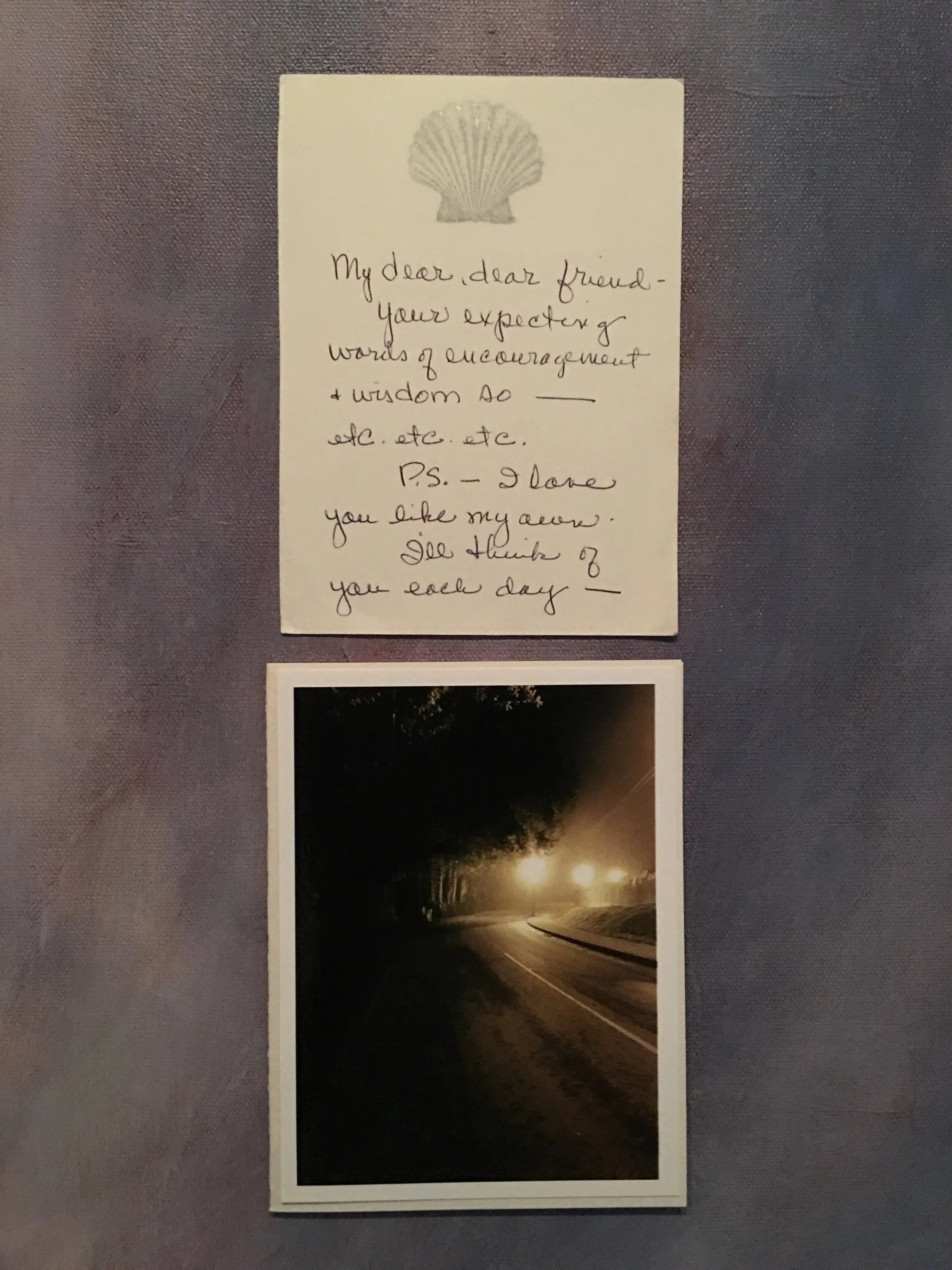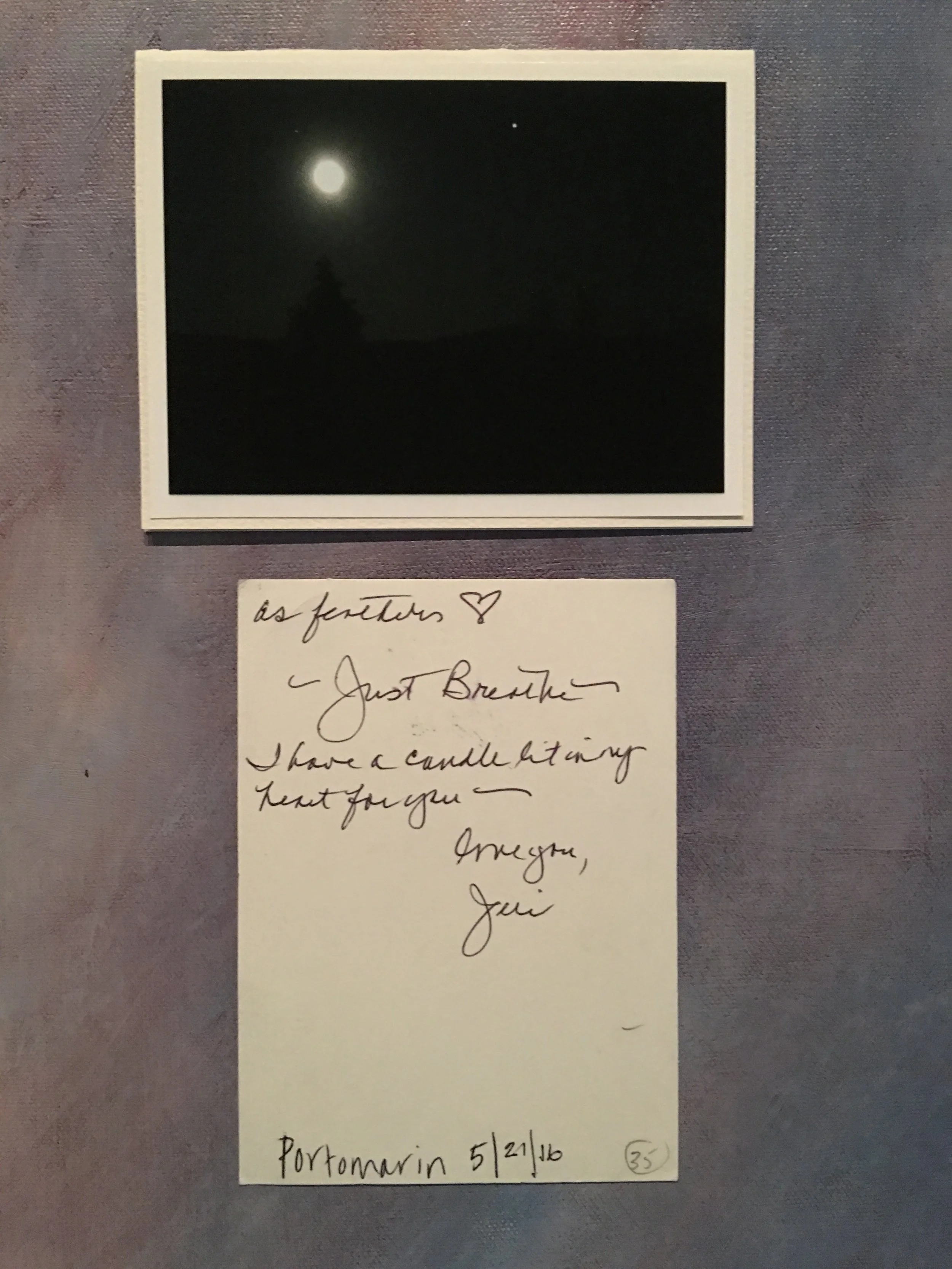 Upon my return home, I printed a photo of the place where I was when I read each sentiment. Below are cards sent back to me along with the photo I returned to say thank you (there are more than 41 because some people needed more space to write and I wanted to include these notes, too).