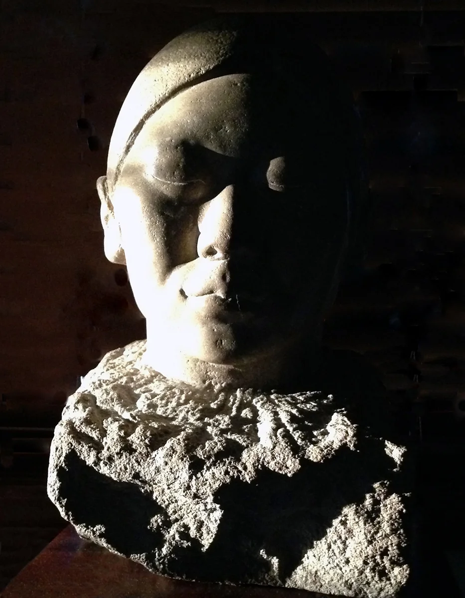 This sculpture is one that my husband has carried with him from back in the '70's. He saw her once and although wanting to purchase her at that time, could not. However years later, after tracking her down, he finally was able to take her home. I think it's the strength and peace about her that speaks most to him. She sits inside, just at our front door, to remind us of the importance of the two qualities, as we walk this daily journey, called life.